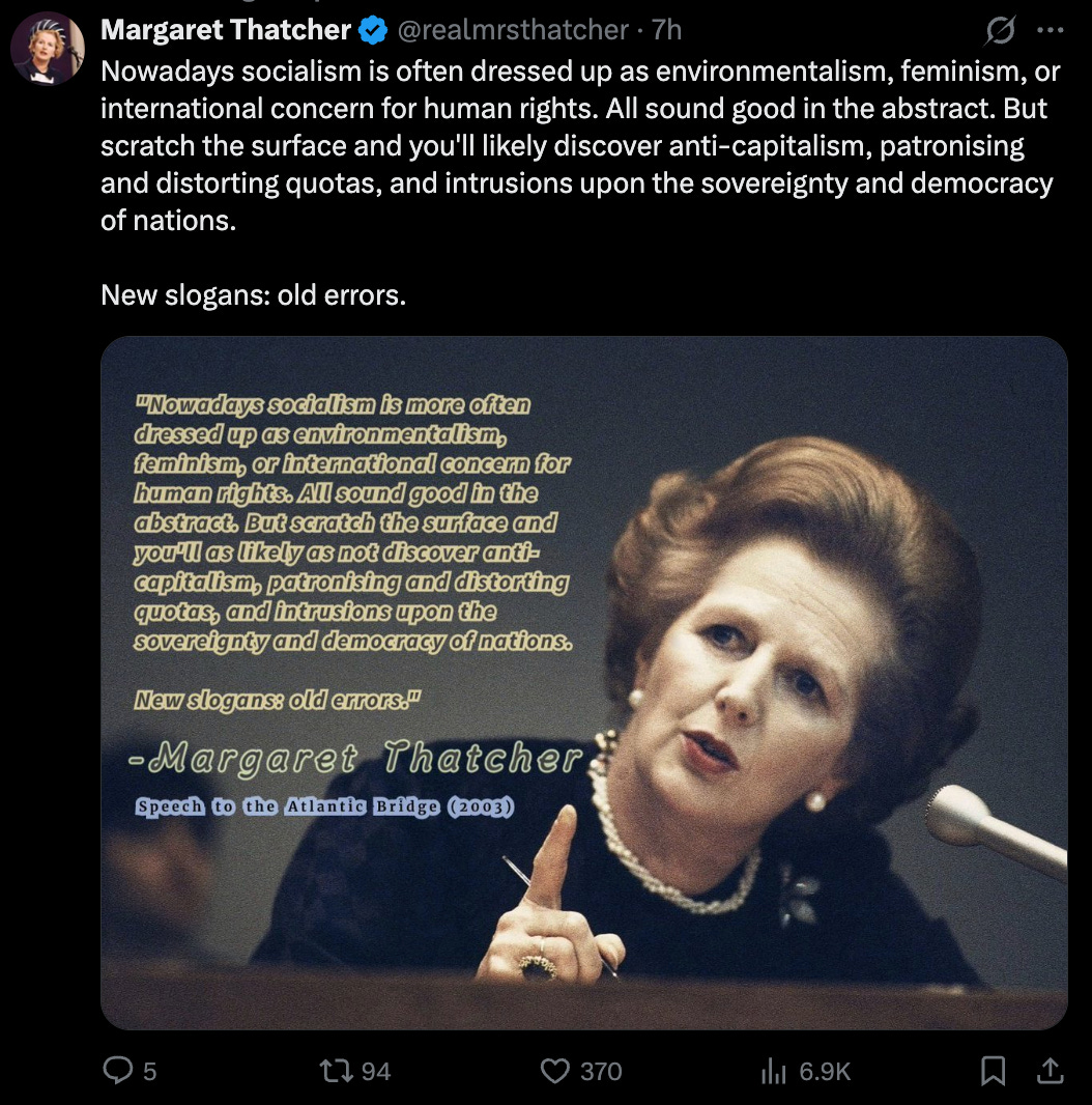 This is part 1 of a three part series inspired by this quote from Margaret Thatcher. We shouldn’t allow these things to be hijacked to mean something destructive. All of these things matter, and the way Unhumans* insert themselves into something good and turn it into something vile and destructive makes me angry.