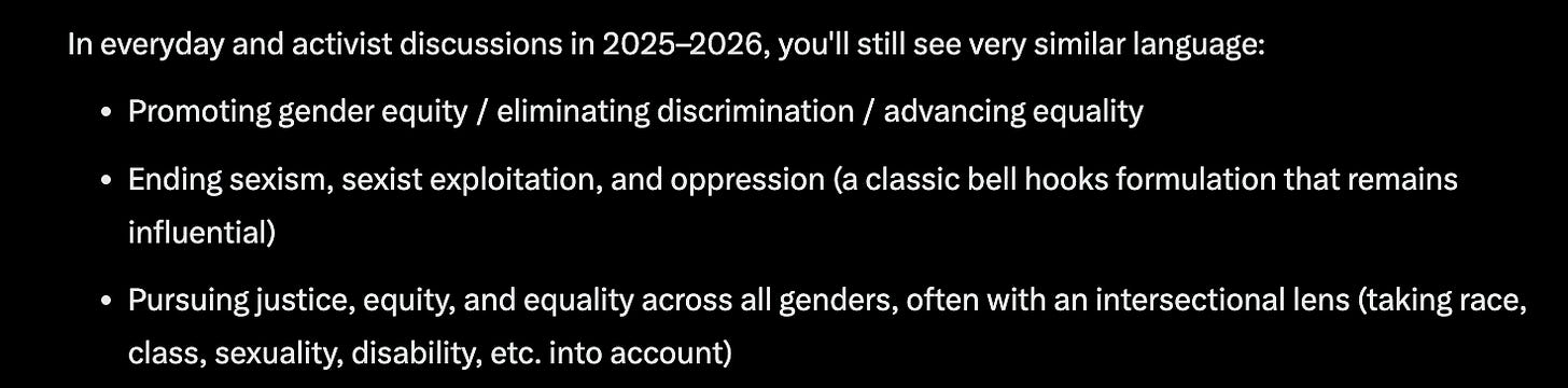 This is how you hack people’s passion and emotion: Twist the meaning of the word ‘equality’ into the word ‘equity’. Worse, take straight-forward ideas like ‘women should be educated, and ‘women should be able to own property and vote’, and dilute the goal by eliminating the end-point, [there is a whole essay here about definable, limited goals] and tossing in terms like ‘justice’ and ‘intersectionality’.